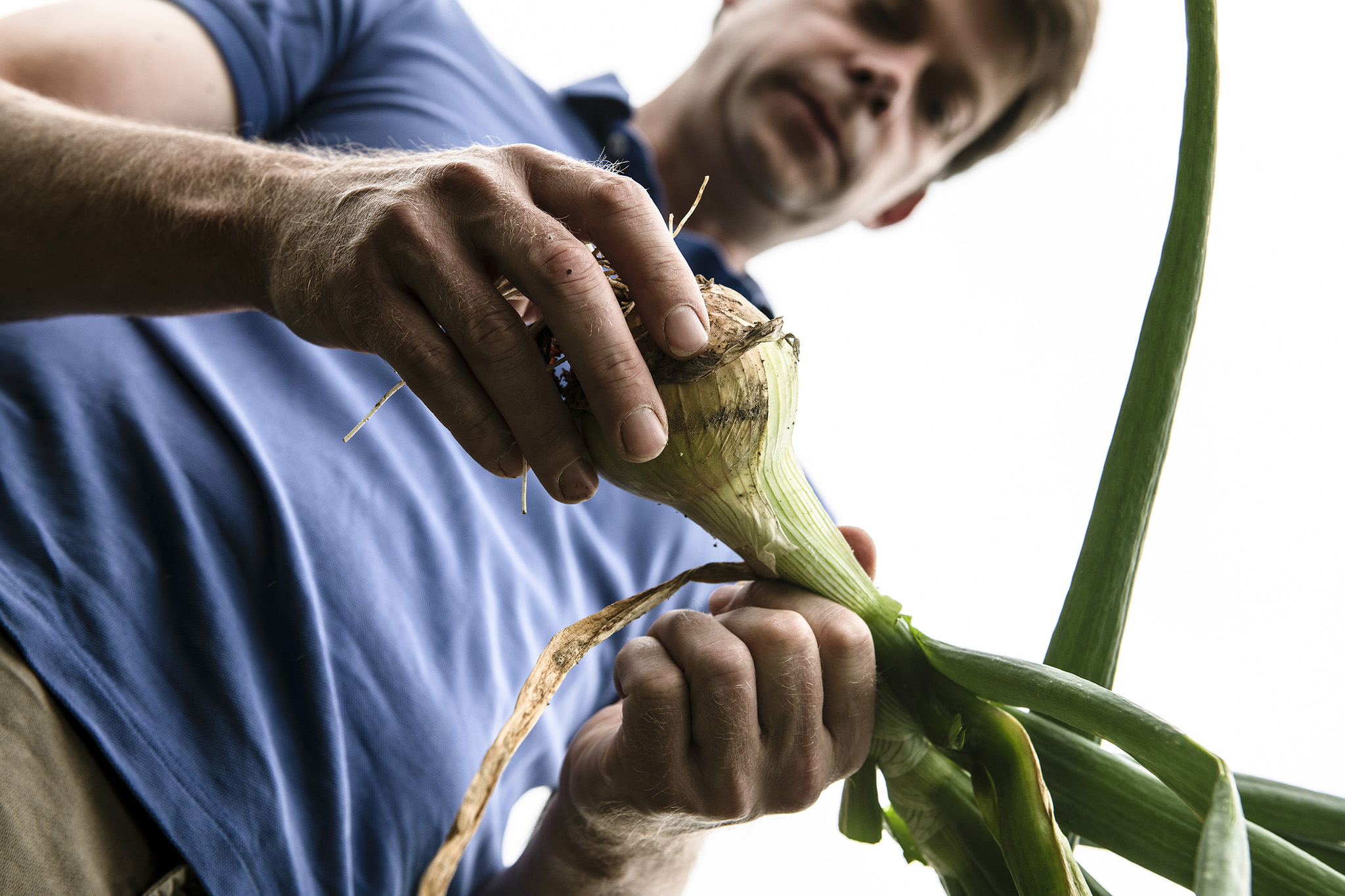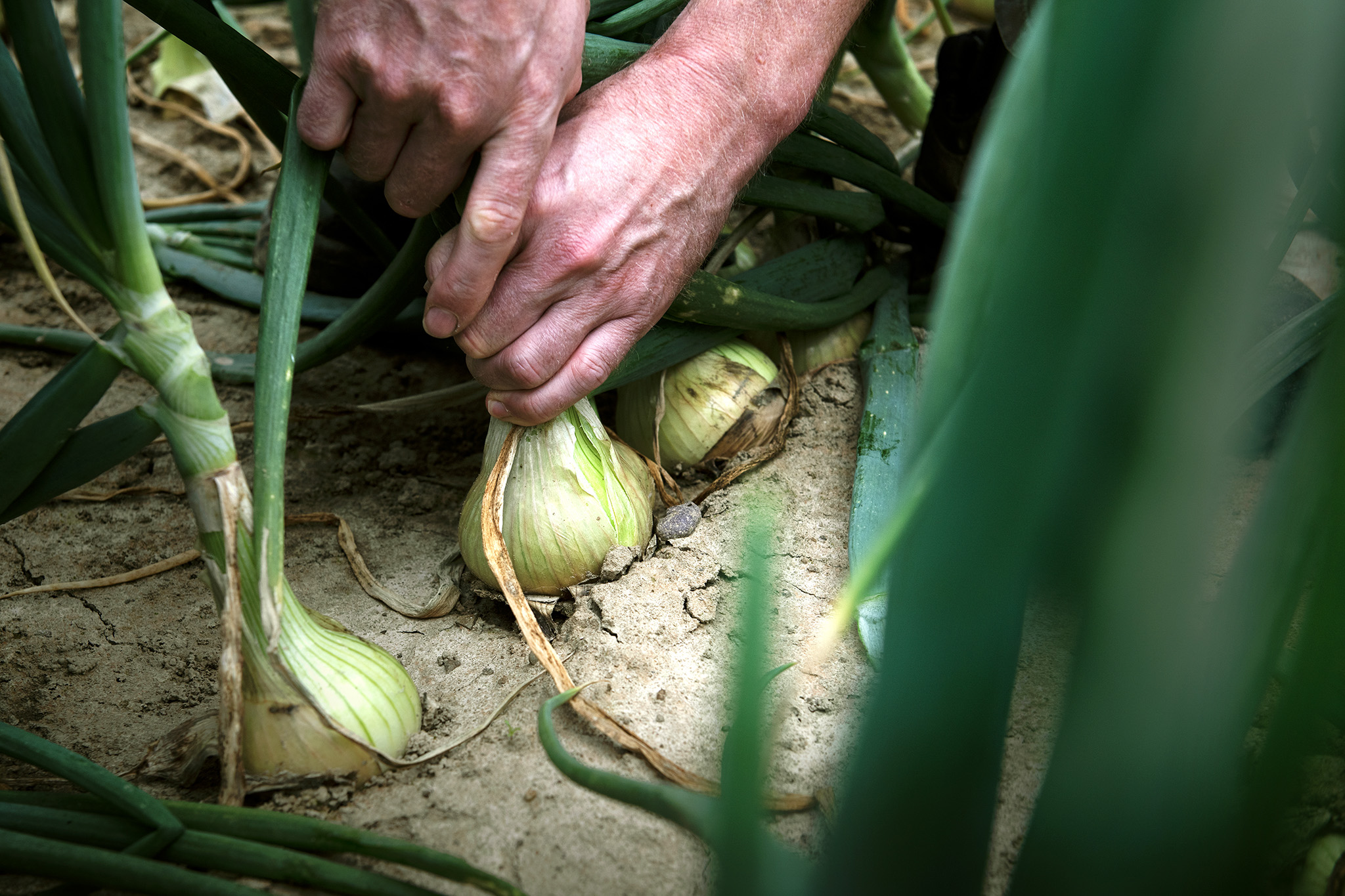 Reportage über den landwirtschaftlichen Arbeitskreis "Onion Ring". Versuchsfeld mit gepflanzten Zwiebeln. Mitarbeitermagazin "Team Spirit."