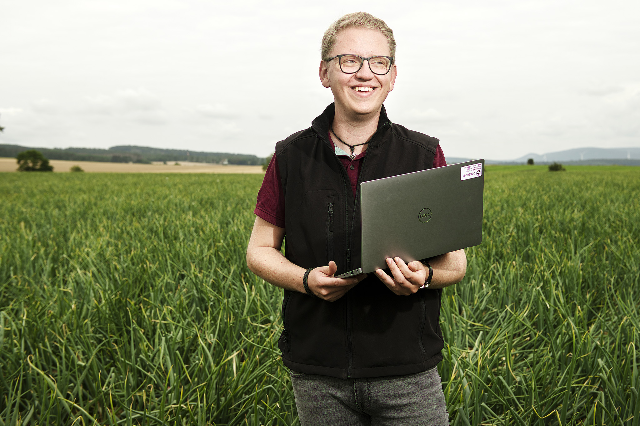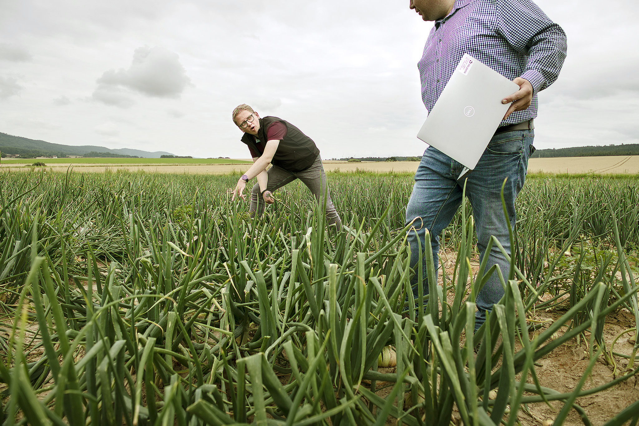 Reportage über den landwirtschaftlichen Arbeitskreis "Onion Ring". Versuchsfeld mit gepflanzten Zwiebeln. Mitarbeitermagazin "Team Spirit."